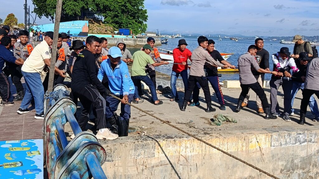 Bangkai Kapal di RTH Papalimba Dievakuasi, Sekretariat DPRD Kendari bersama Dikbud dan Brimob Sultra Sterilkan Venue Internasional