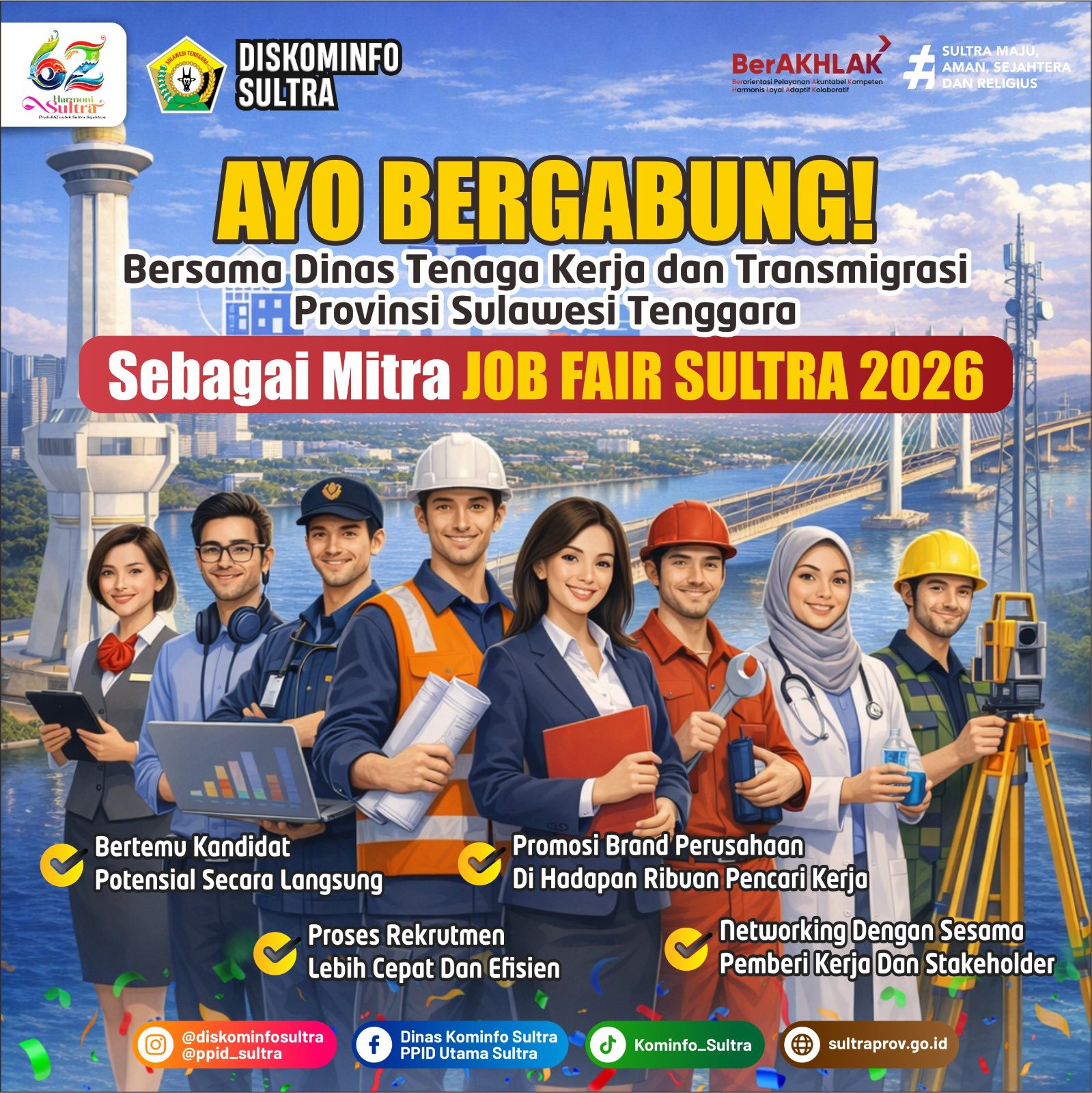 Selain membuka kesempatan bagi para pencari kerja, Pemerintah Provinsi (Pempov) Sulawesi Tenggara (Sultra) juga secara terbuka mengundang berbagai perusahaan dan pelaku industri untuk bergabung sebagai mitra penyedia lowongan kerja.