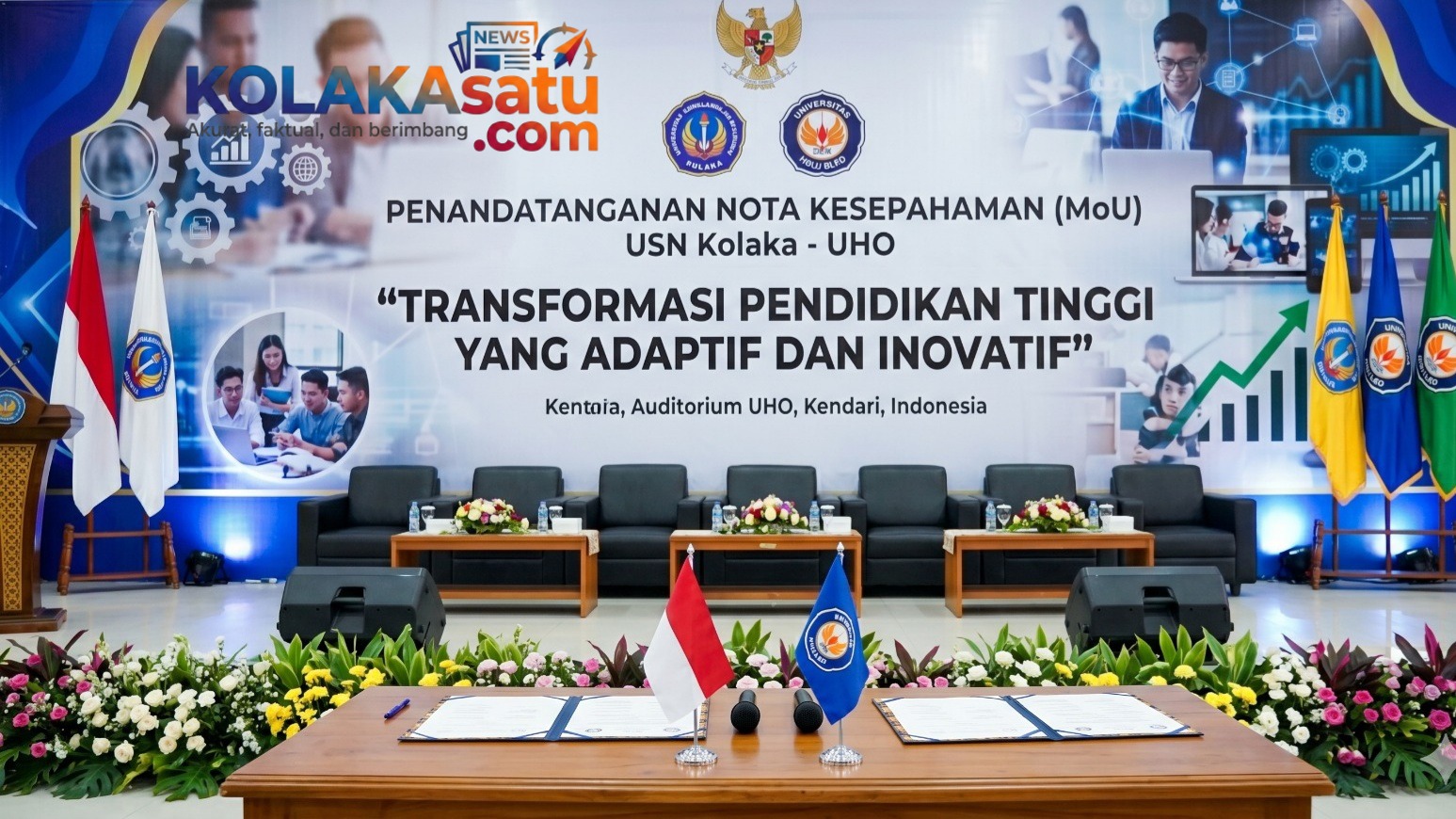 KOLAKAsatu.com, KOLAKA – Universitas Sembilanbelas November (USN) Kolaka dan Universitas Halu Oleo (UHO) resmi menyepakati kerja sama strategis melalui penandatanganan Nota Kesepahaman (MoU) di Gedung Auditorium UHO, Kendari, Kamis (16/4/2026). Kesepakatan ini bertujuan untuk mempercepat transformasi akademik dan meningkatkan kualitas riset di kedua institusi.