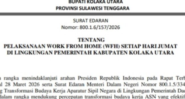 Tok! Kolaka Utara Berlakukan WFH Jumat, Kecuali untuk Petugas Medis dan Perizinan BERANDA, Kolaka Utara|4 April 20265 April 2026oleh Kolakasatu.com
