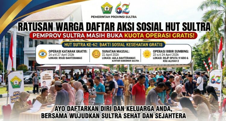 HUT ke-62 Sultra, Ratusan Warga Ikuti Operasi Gratis dan Sunatan Massal BERANDA, Sultra|12 April 2026oleh Kolakasatu.com